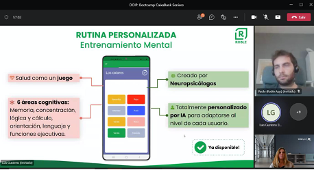 Les empreses finalistes que van presentar la seva pitch en el repte CaixaBank Sèniors van ser ACTIF, que ofereix beneficis físics i cognitius per als majors a través de contingut entretingut llest per a ser usat, Knok, la plataforma de telemedicina totalment integrada amb el propòsit de millorar tots els aspectes de l'atenció al pacient, Roble App, la plataforma SaaS que promou pràctiques de salut i benestar per a persones majors de 50 anys, Rosita Longevity, l'app que pretén augmentar la longevitat oferint a les persones majors hàbits saludables que els permetin major independència i Trak, l'eina creada per i per als professionals sanitaris que permet la tele-rehabilitació.