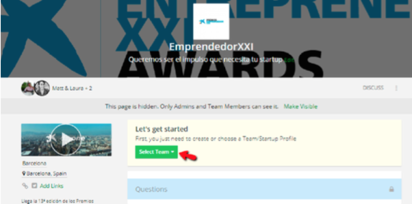 Una vegada registrat, hauràs de crear un equip i entrar de nou en l'enllaç.